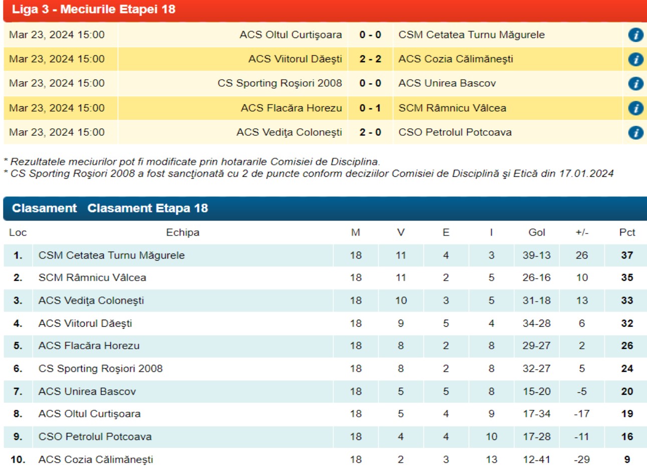 SCM Râmnicu Vâlcea s-a impus sâmbătă la Horezu, 1-0 cu Flacăra, în ultima etapă a sezonului regular din Seria 6 a Ligii 3.