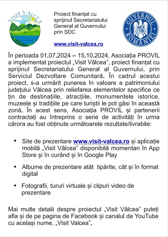 Visit Vâlcea – proiect finanțat cu sprijinul Secretariatului General al Guverului prin SDC