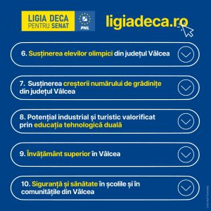 Găsiți, în imaginile de mai jos, și celelalte direcții ale viziunii mele pentru Vâlcea, în calitate de reprezentant al județului în Senat, iar în linkul din comentarii, întregul program politic! ”