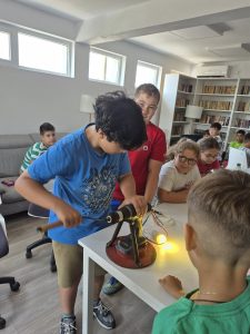 Ziua nu s-a terminat aici. Experimentele despre curentul electric au trezit și mai mult interesul. Copiii au văzut cum se aprinde un bec, cum circulă curentul prin fire și cum o simplă baterie poate pune în mișcare o jucărie. Au înțeles, pe înțelesul lor, de unde vine lumina din casă și cum funcționează aparatele din jurul nostru.