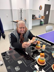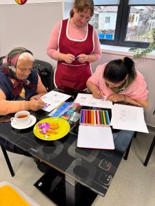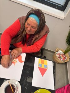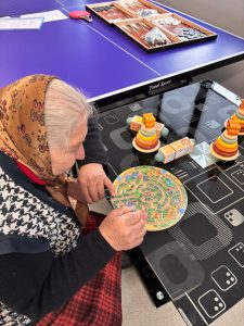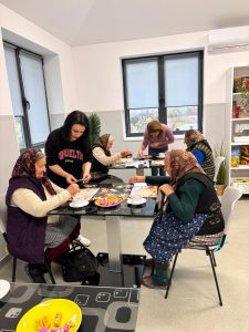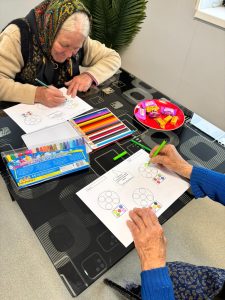 În sala de pictură, seniorii sunt provocați să își amintească lucruri din trecut și să le redea prin desen, iar rezultatele sunt expuse chiar în centru, pentru că lucrările lor devin, în timp, o formă de exprimare care le dă încredere.
