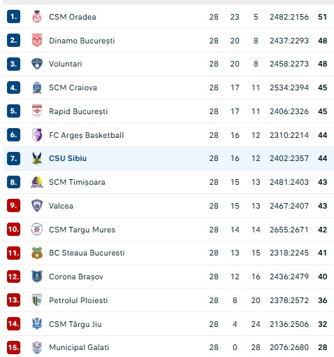 În ultimul meci din sezonul regulat al Ligii Naționale de baschet, CS Vâlcea 1924 a pierdut cu Dinamo București, scor 81-88.